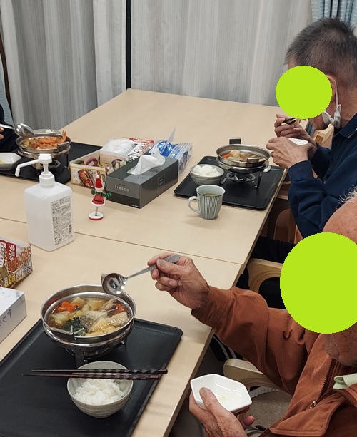 目の前でお鍋の蓋を開けるとほわ~と湯気が上がります。