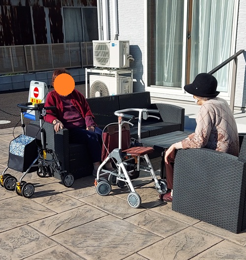 帰ってきたら奥様方はベンチで日向ぼっこです。