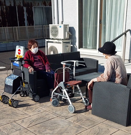 奥様方はベンチで日向ぼっこです(*^-^*)